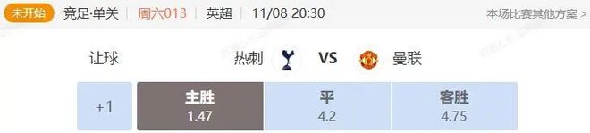 亚洲数据热刺主让平手中位起步,后市曼联有所拉低,以两队的定位来看属于同档球队,开平手对于热刺明显偏浅,不过由于曼联状态火热逐步走入正轨,反观热刺连续输给切尔西和纽卡斯尔等强队且周中打了欧冠体能处于劣势,主动浅开并且拉低曼联就有做热曼联的嫌疑并不可信,欧洲数据2.60的主胜搭配3.40的中庸平局,在平局有所防范的情况下主胜则成为心里冷门陪付压力并不大,因此本场我看好主场作战的热刺不败。